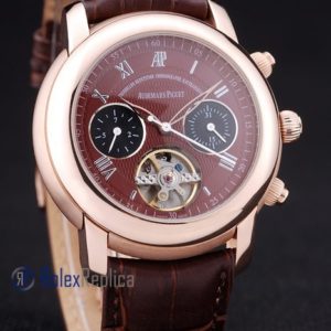 audemars piguet replica chrono rose gold strip leather brown imitazione copia