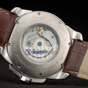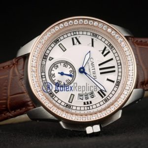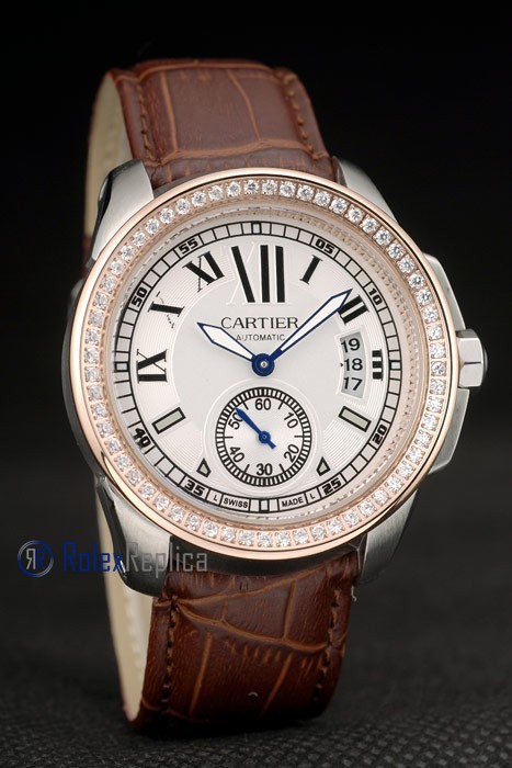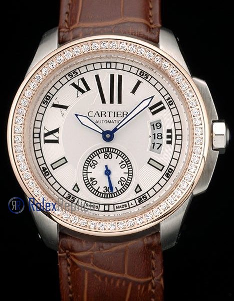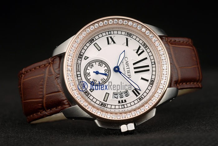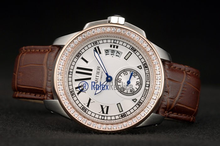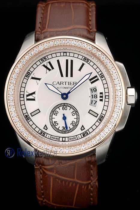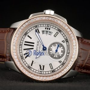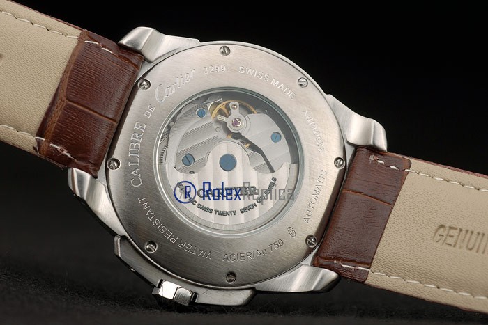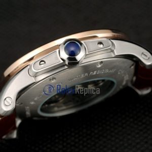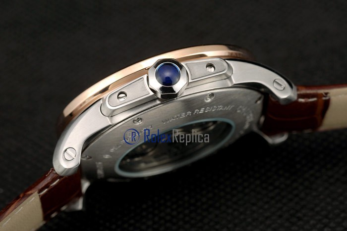 Cartier replica calibre skeletron rose gold strip leather white dial imitazione copia