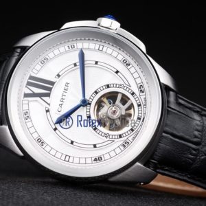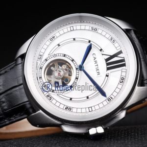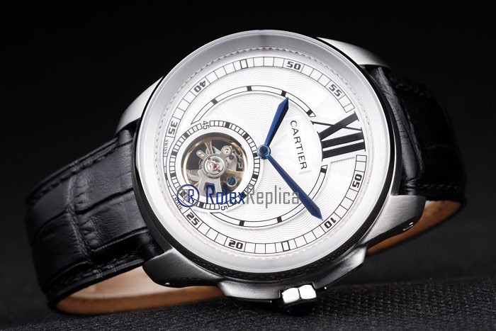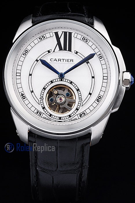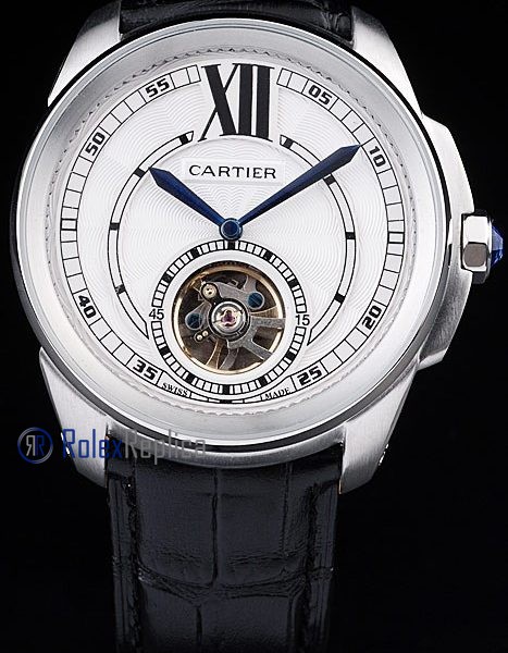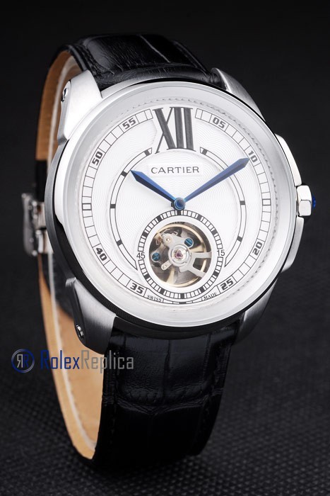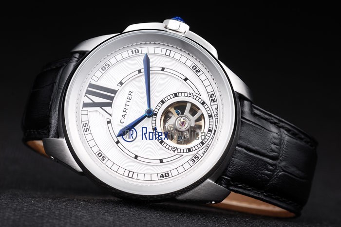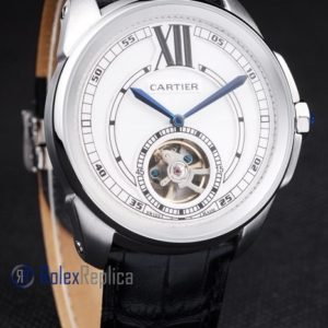 Cartier replica calibre skeletron tourbillon strip leather black imitazione copia