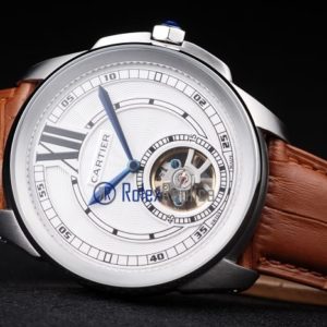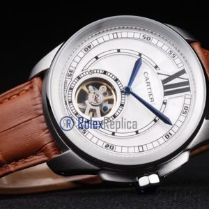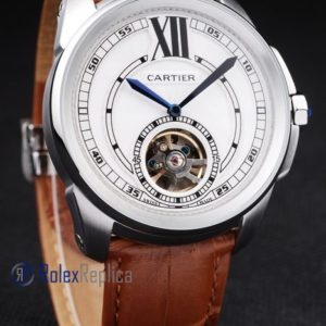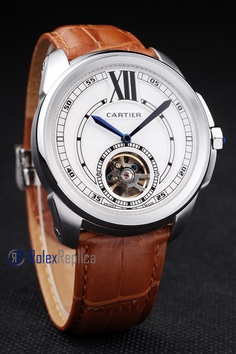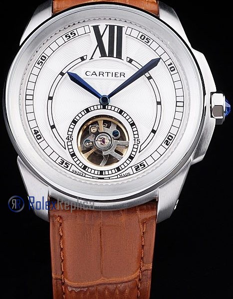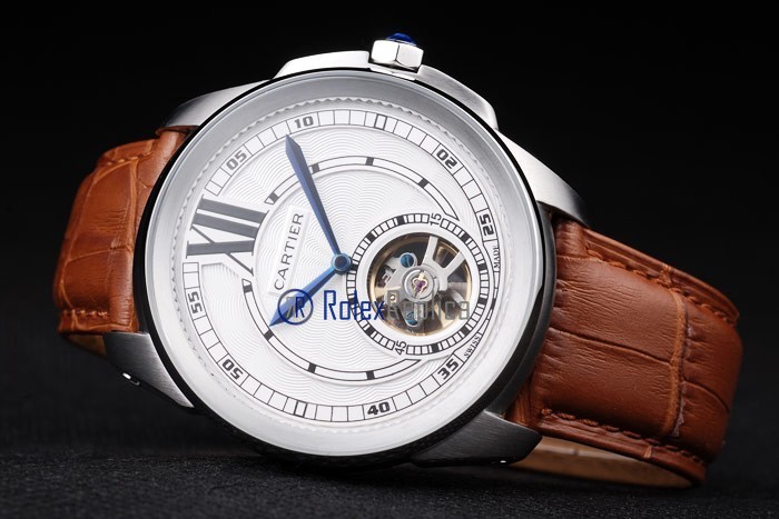Cartier replica calibre skeletron tourbillon strip leather white dial imitazione copia