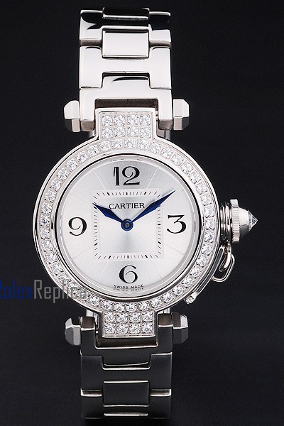 Cartier replica pasha acciaio brillantini argentèè dial imitazione copia