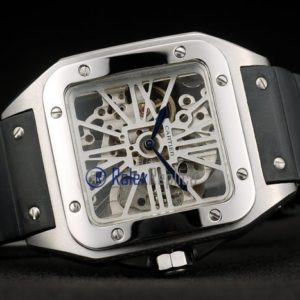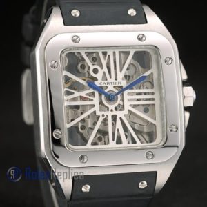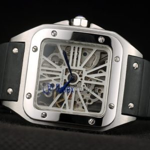 Cartier replica santos 100 skeletron strip leather acciaio imitazione copia