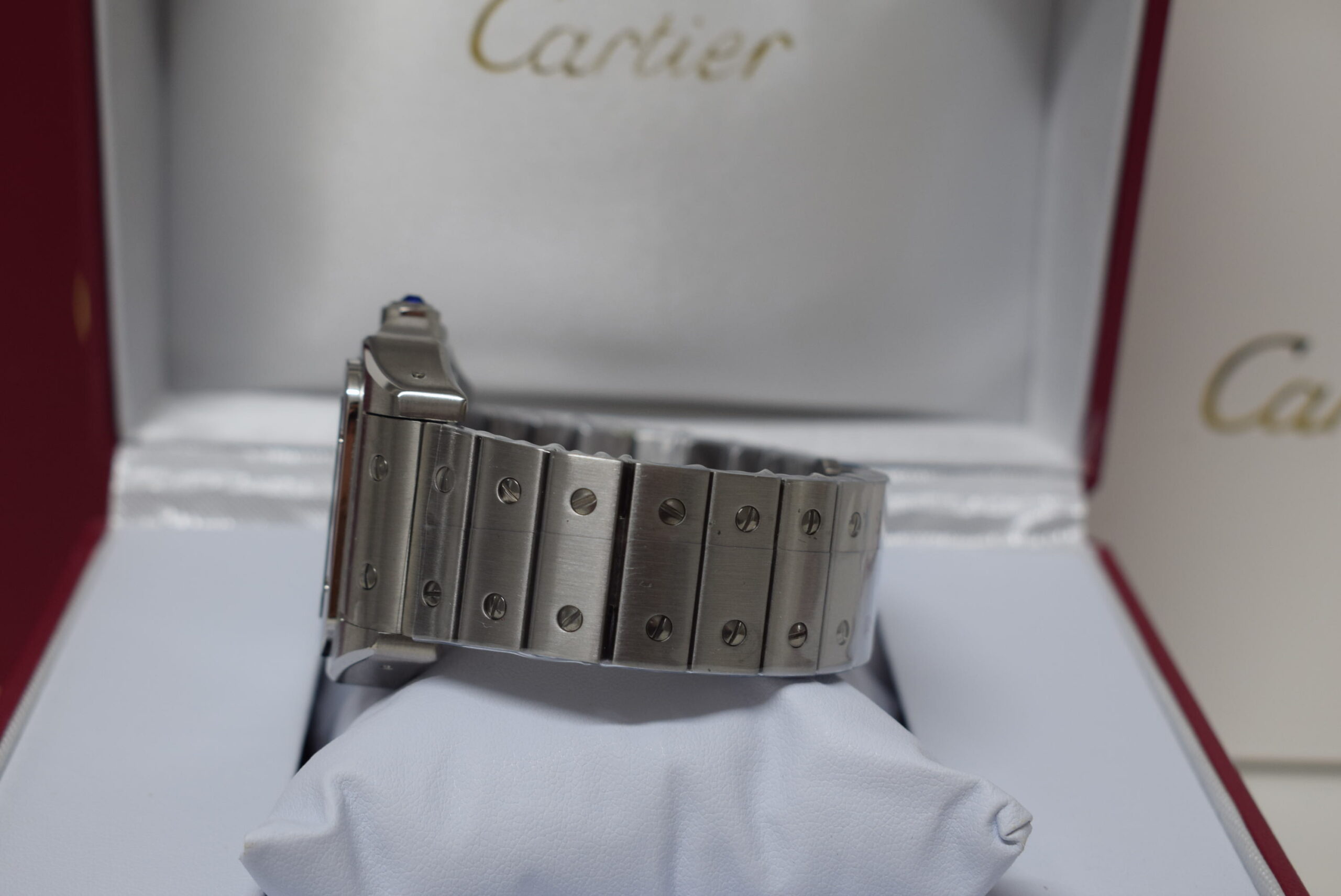 - Cassa fresata dal pieno con i più moderni strumenti dell’ alta orologeria in acciaio Inox 904 AISI L, realizzata su base originale con strumenti di disegno al CAD. Le casse sono tutte timbrate e serigrafie come in originale: numero di matricola da un lato tra le ansette e numero di referenza come in originale Cartier