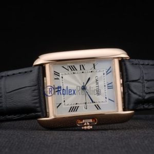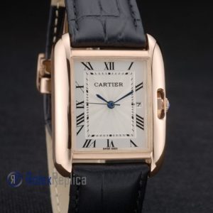 Cartier replica tank americaine oro strip leather black white dial imitazione copia