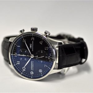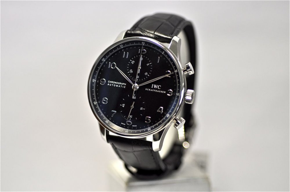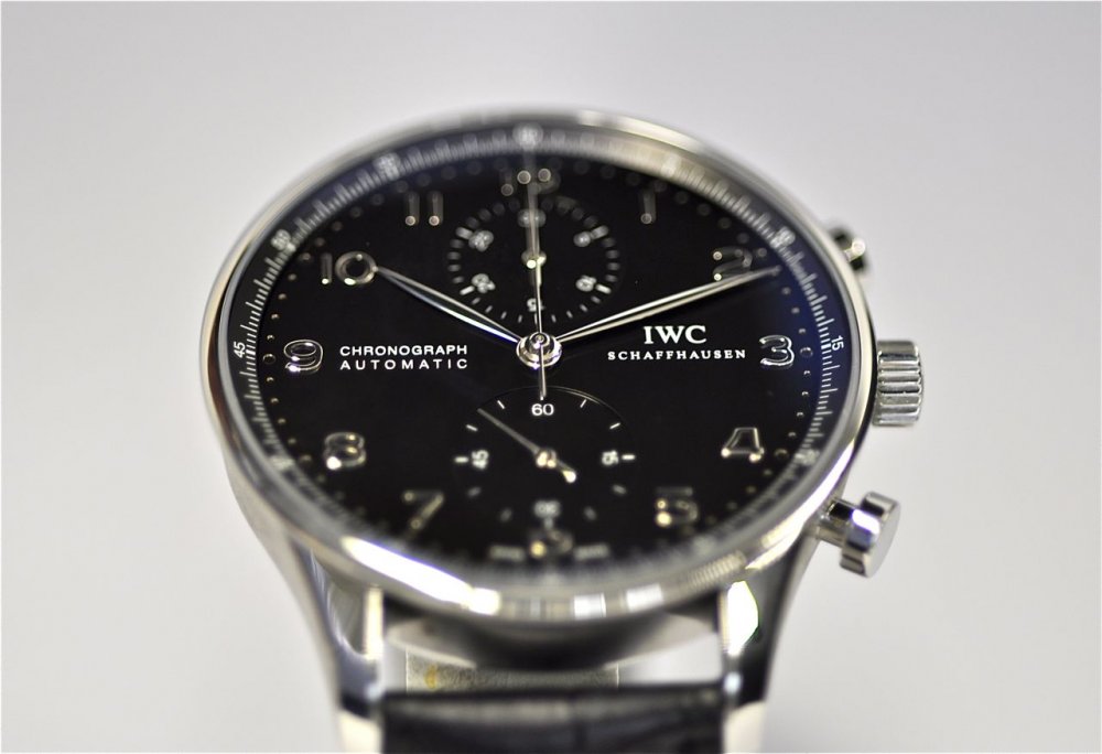 iwc replica portoghese chrono black dial strip leather orologio imitazione