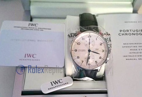 iwc replica portoghese chrono white dial strip leather orologio imitazione