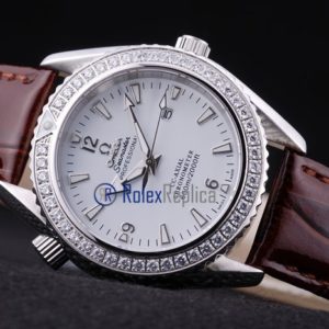 Omega replica seamaster co-axial lady brown strip leather imitazione copia