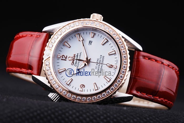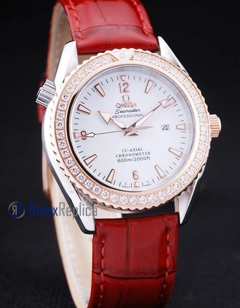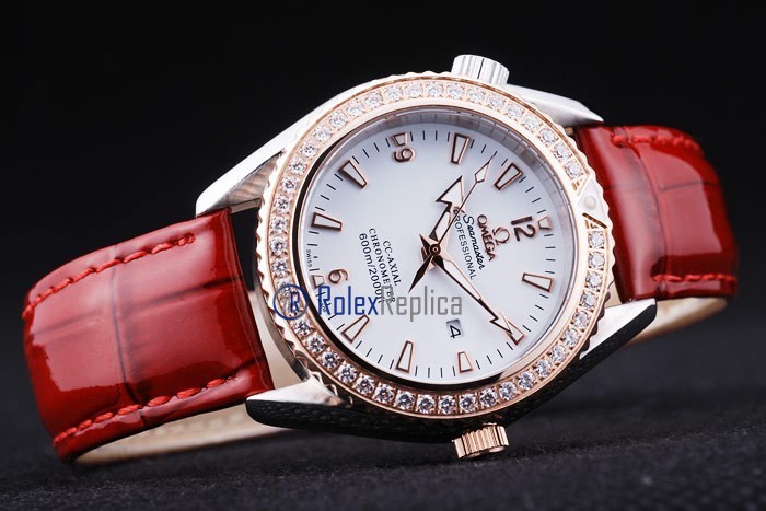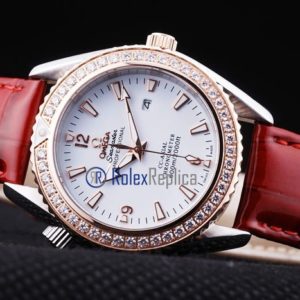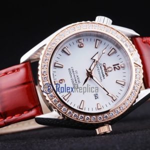 Omega replica seamaster co-axial red lady strip leather imitazione copia