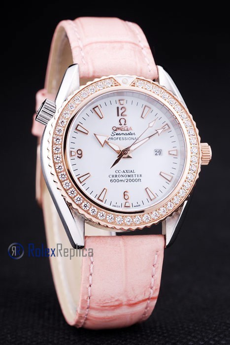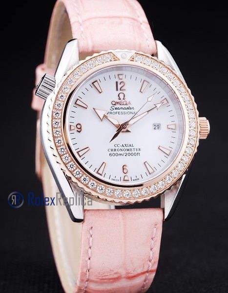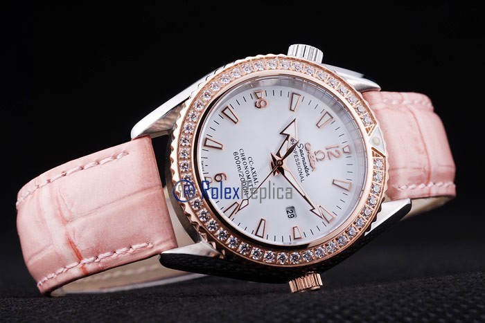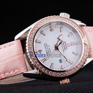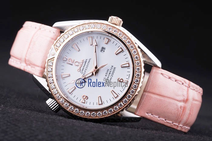 Omega replica seamaster co-axial rosè lady strip leather imitazione copia
