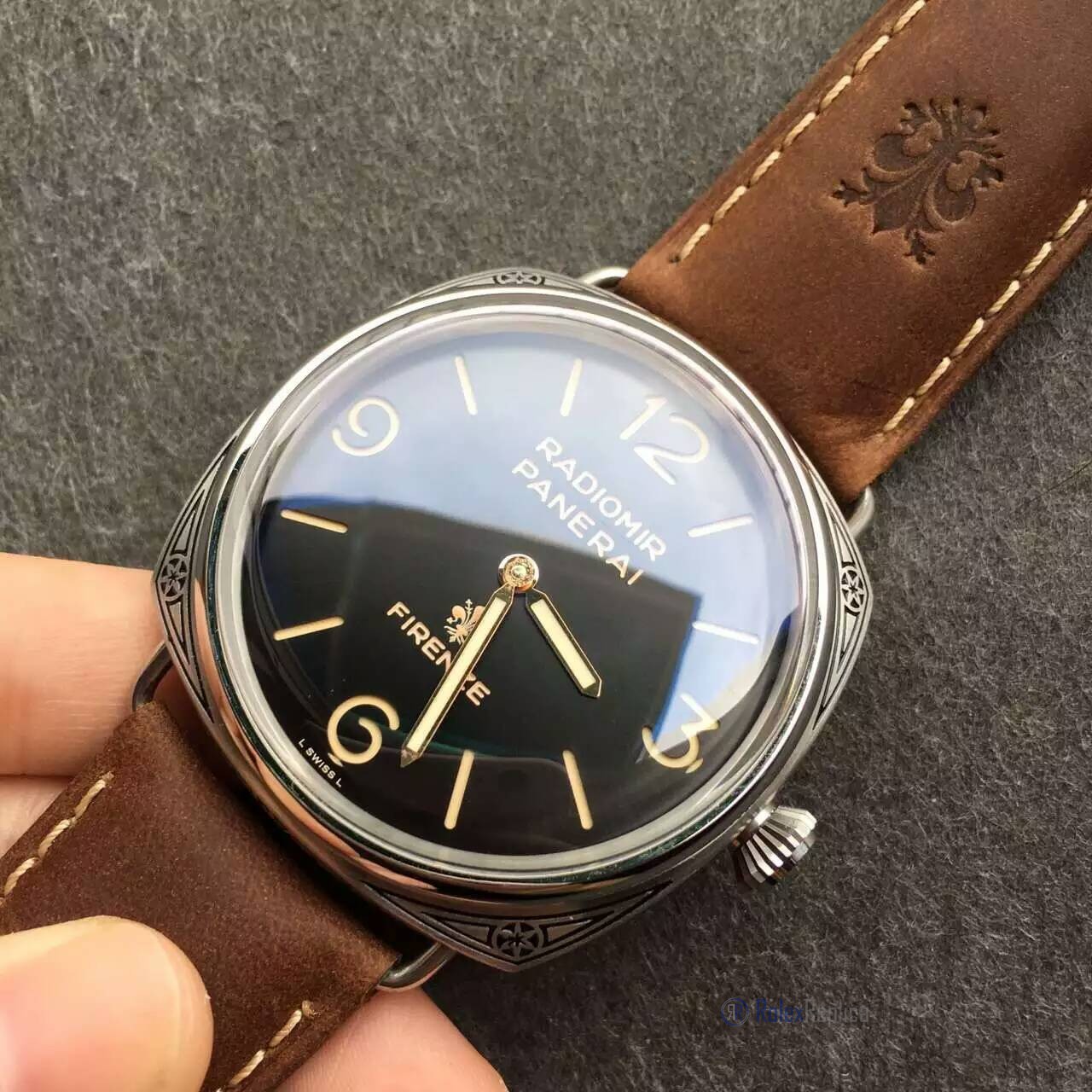 - Guarnizioni O-Ring su cassa e corona che consentono impermeabilizzazione del vostro panerai replica