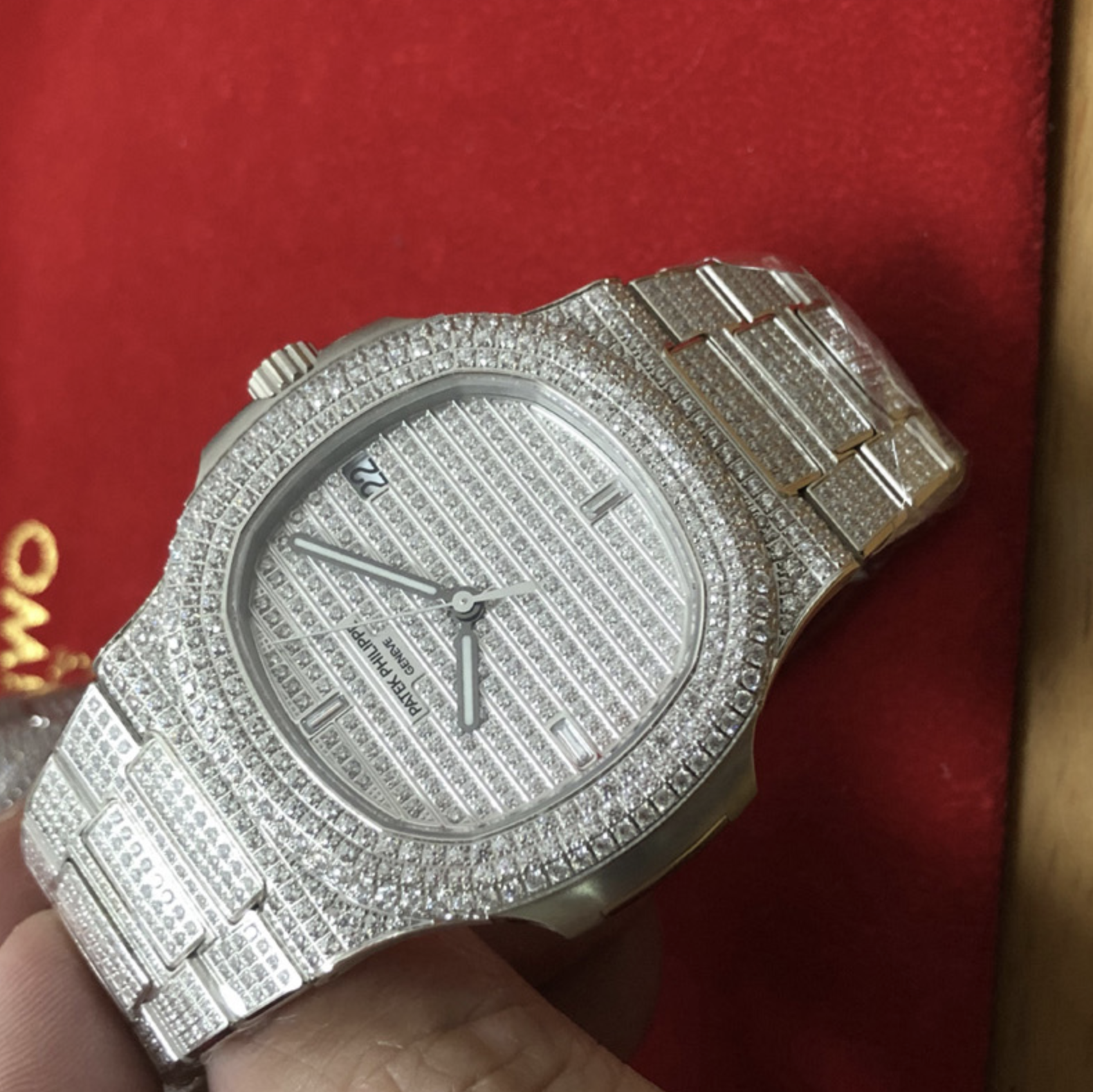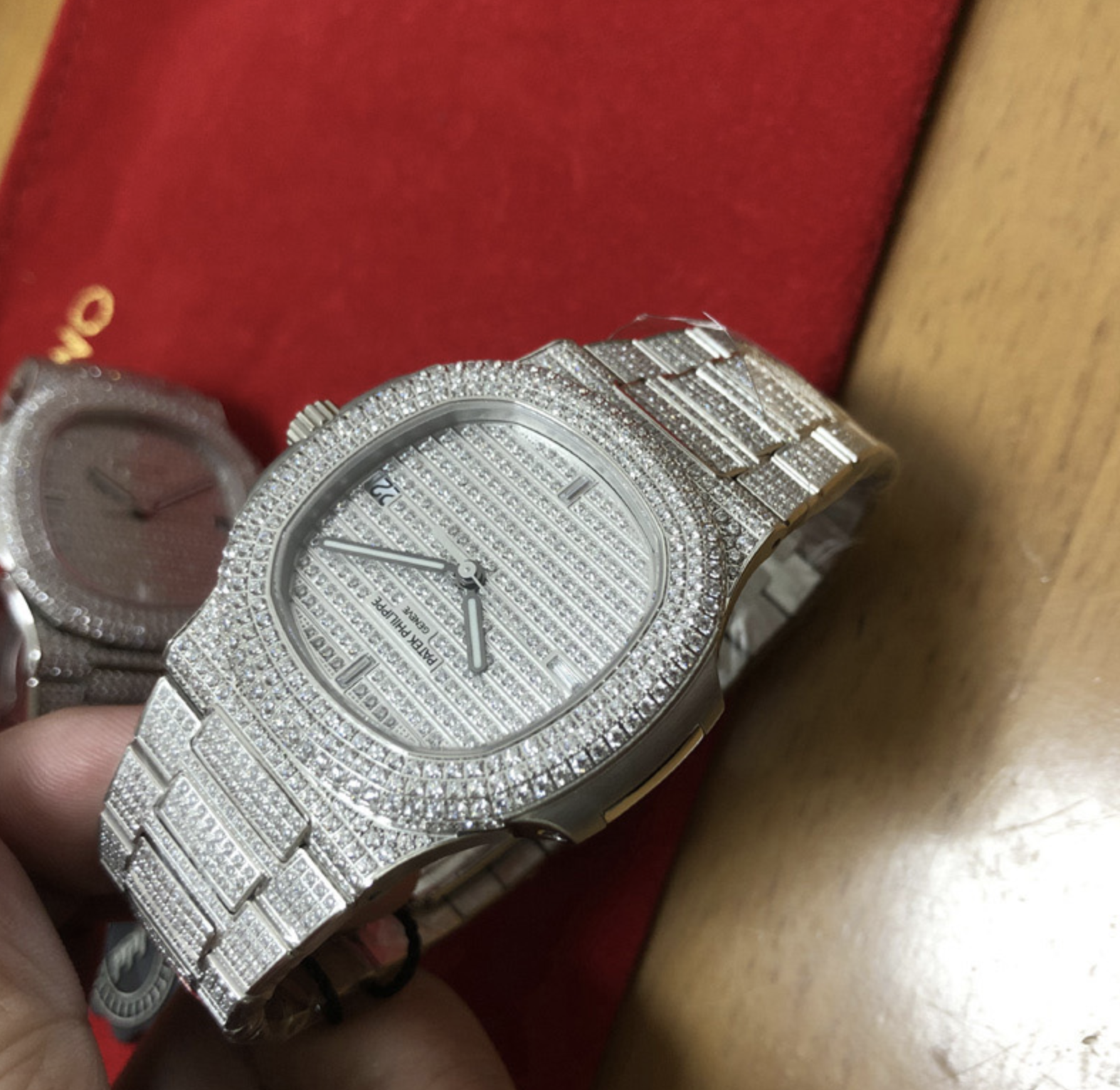 Patek philippe replica nautilus 5719/1g full diamonds dial pave 324SC clone movement