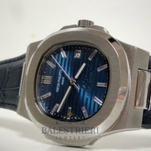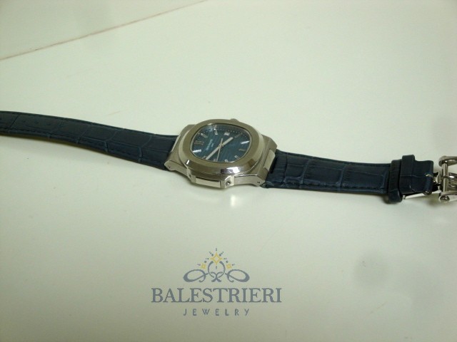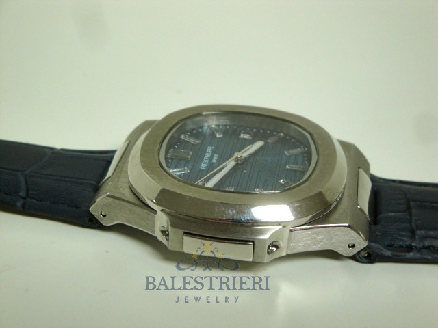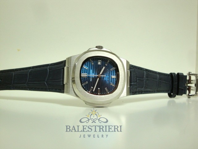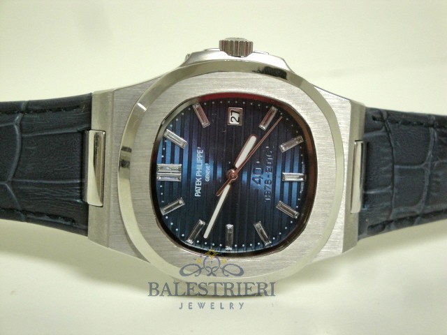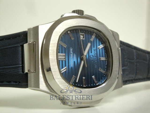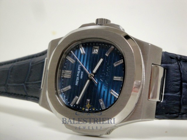 patek philippe replica nautilus acciaio blue dial strip leather orologio imitazione
