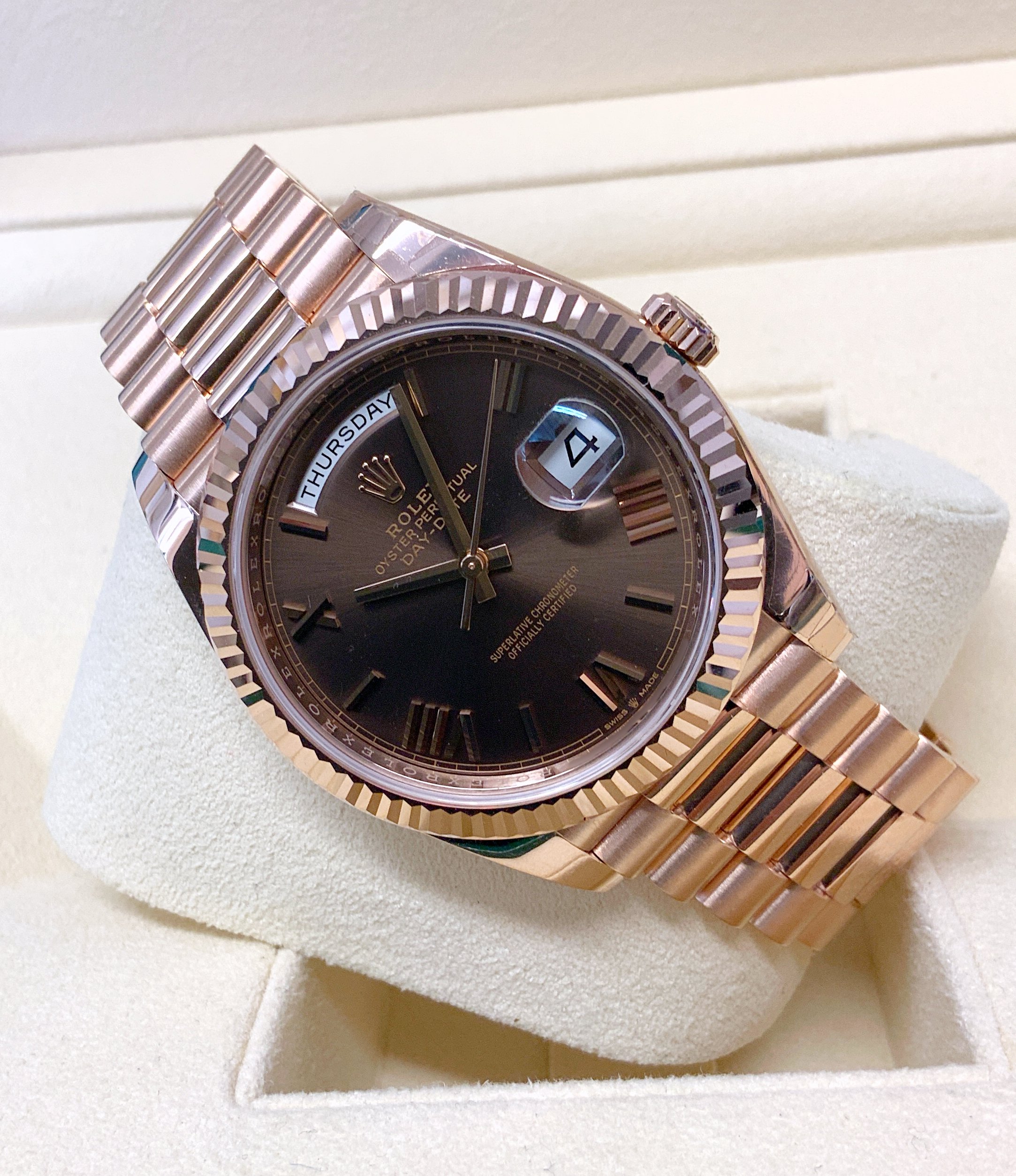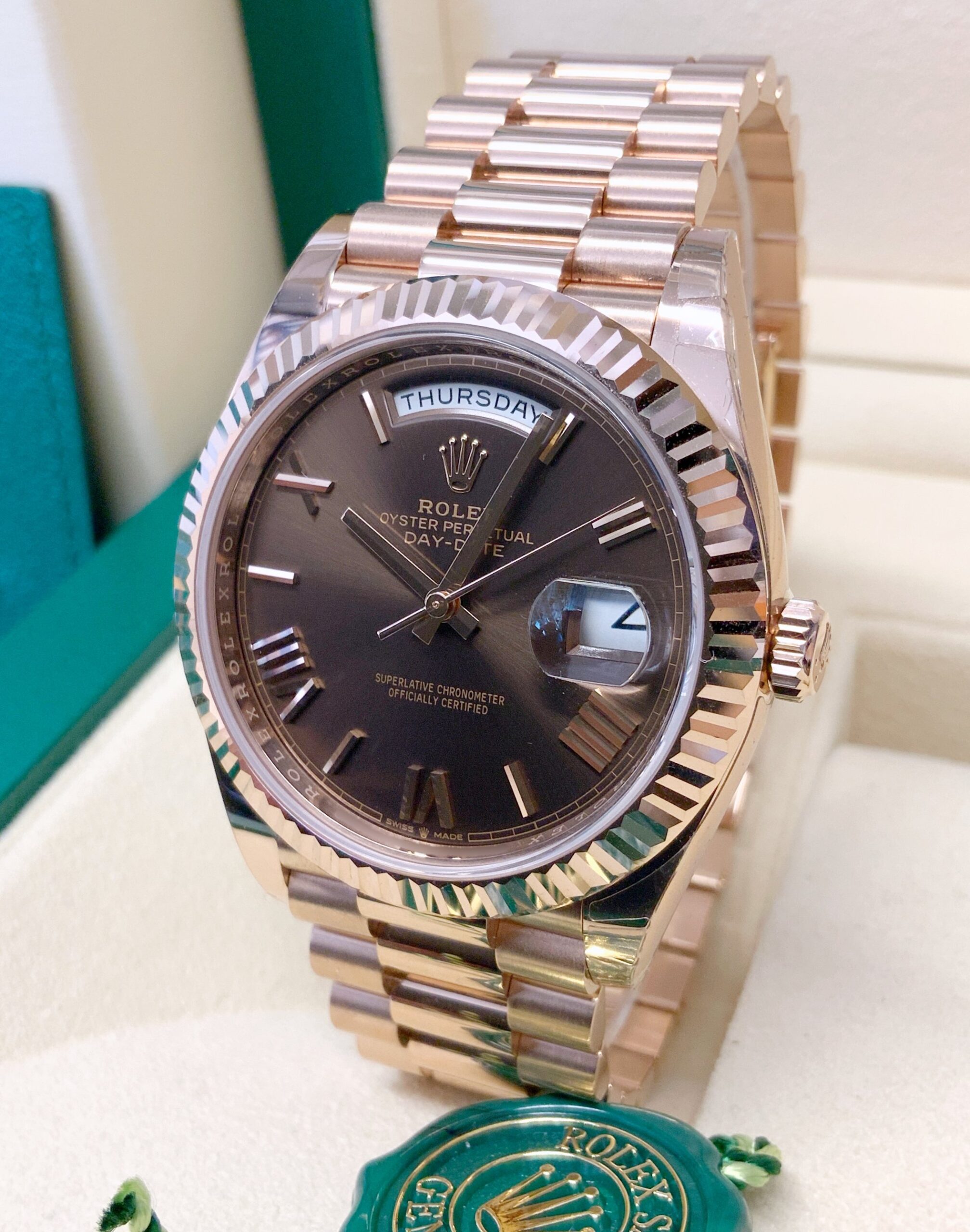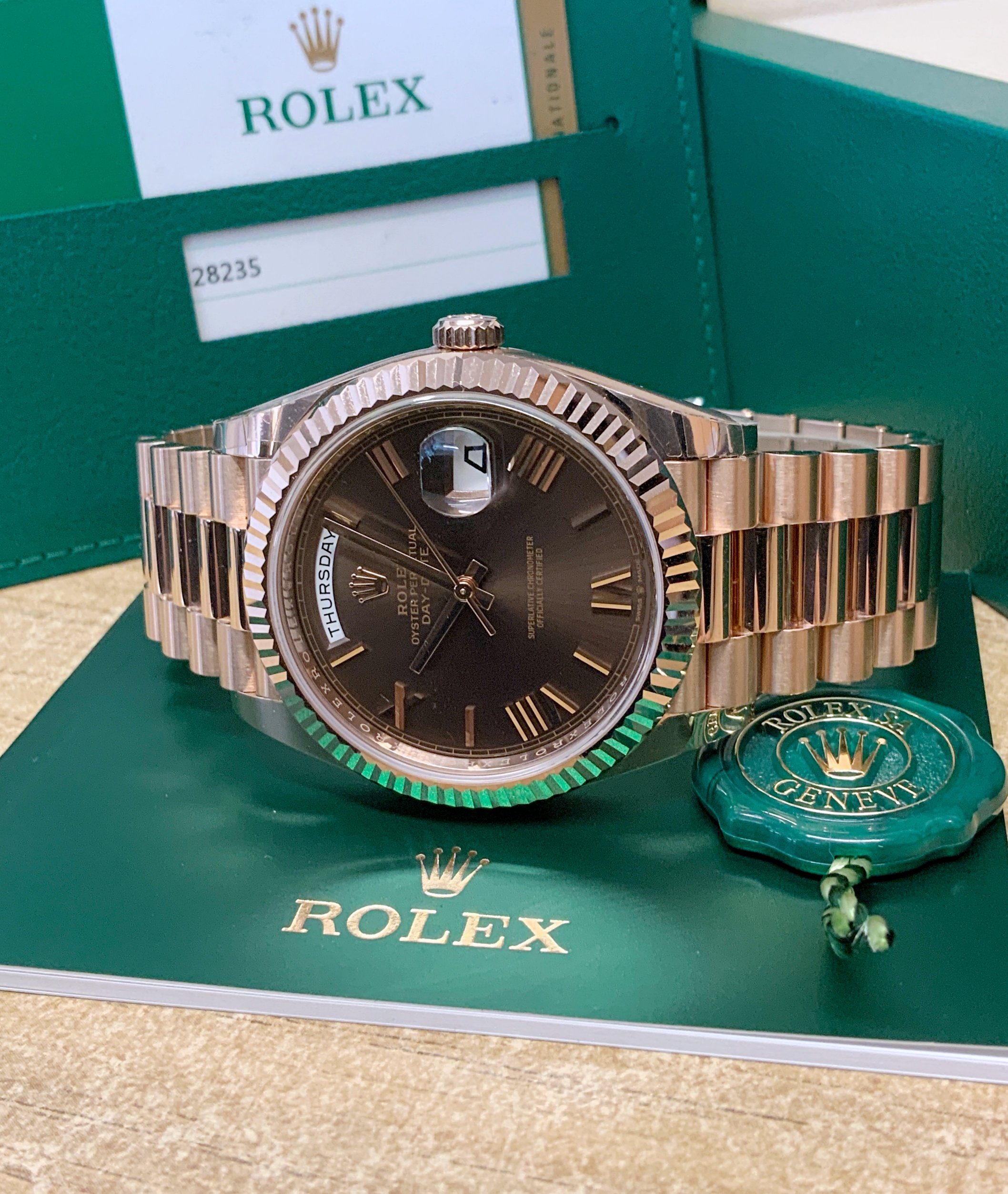 Replica Rolex Day-Date choco 40 228235 Rose Gold