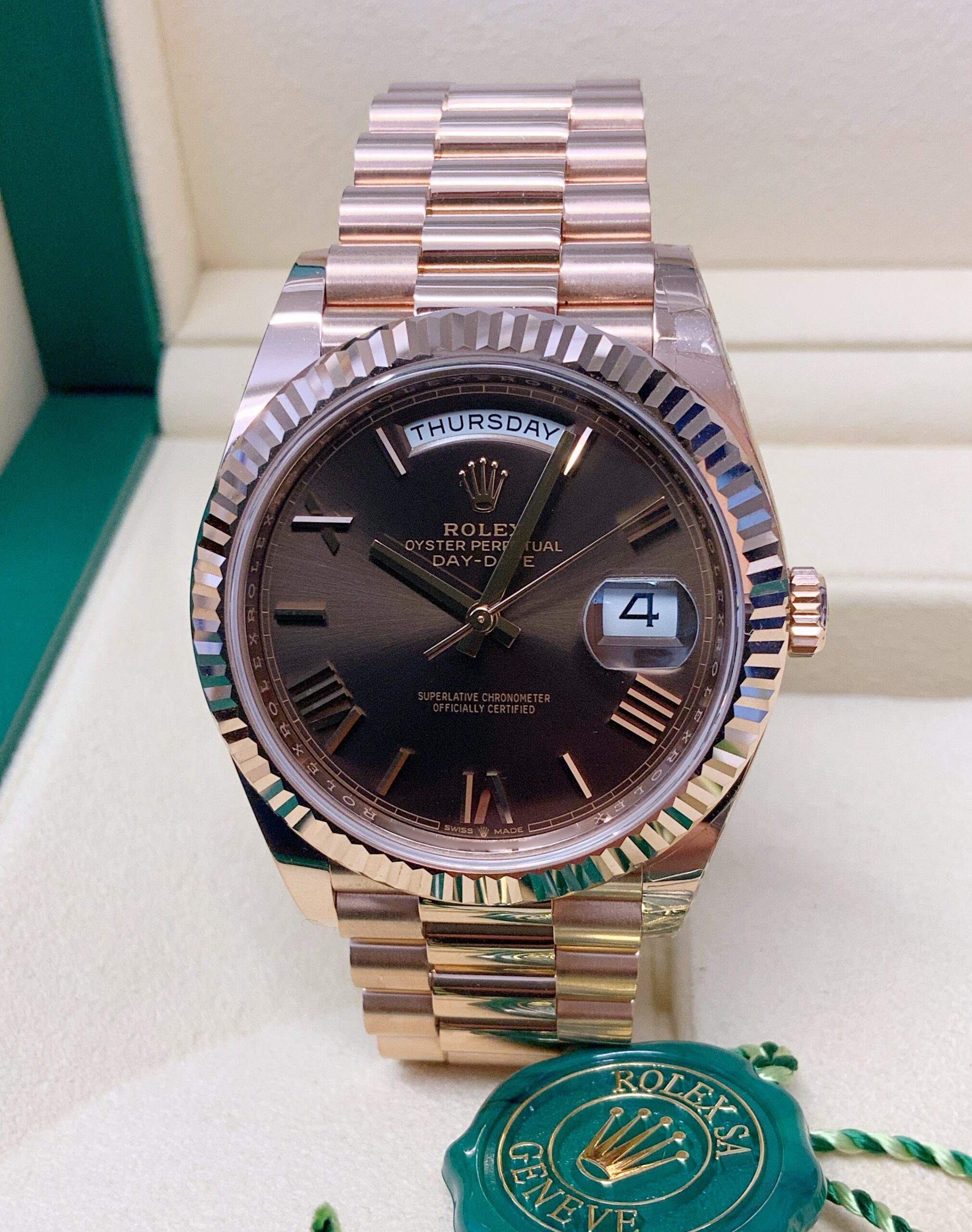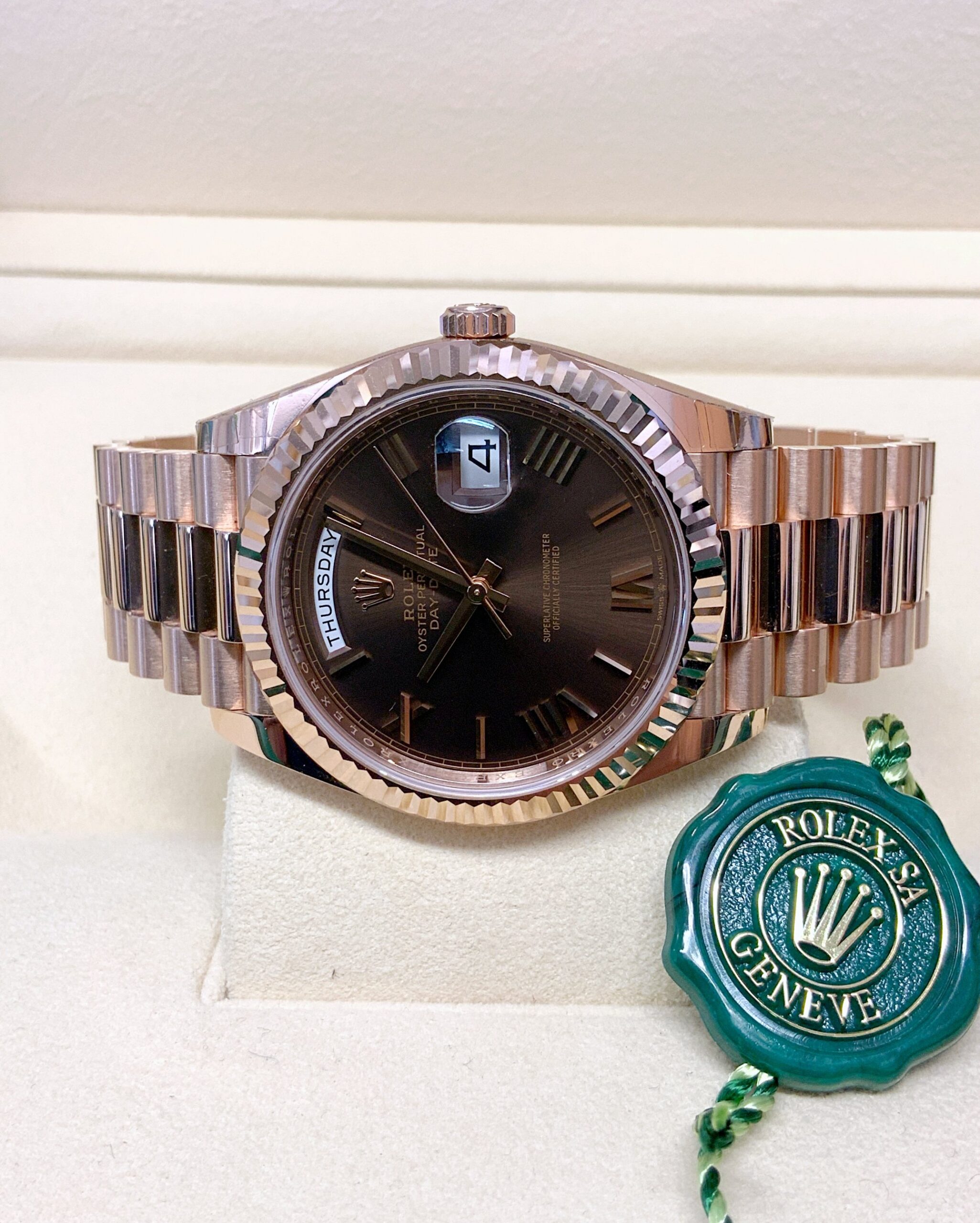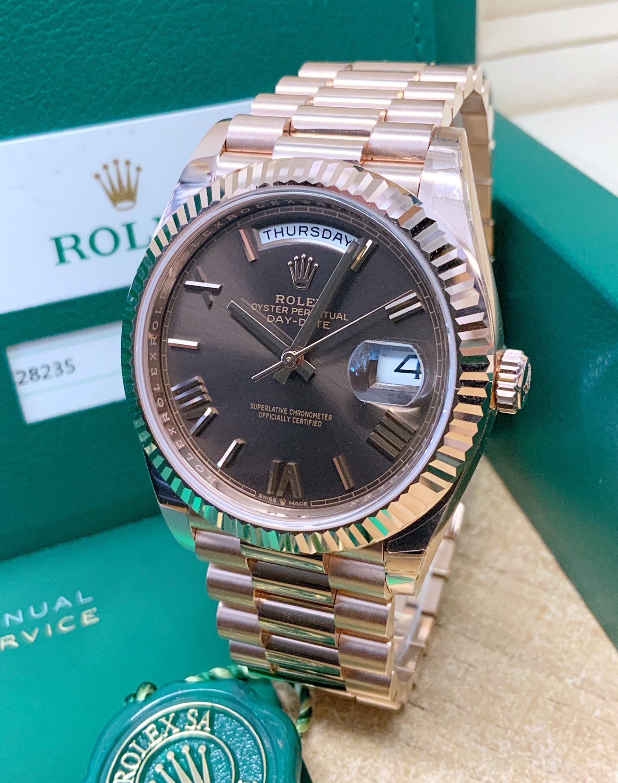 Replica Rolex Day-Date choco 40 228235 Rose Gold