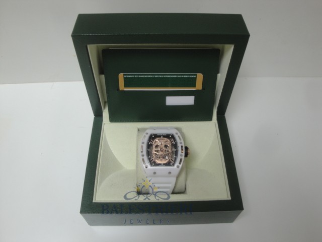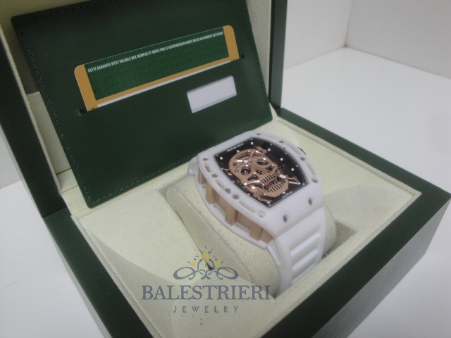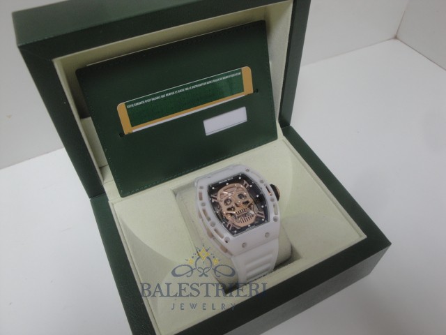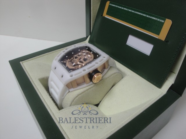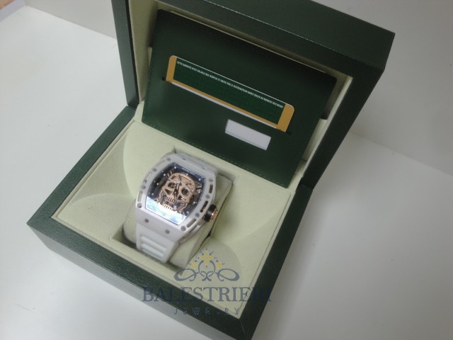 richard mille replica skull nano ceramic skeletron rose gold special edition white strip rubber-b