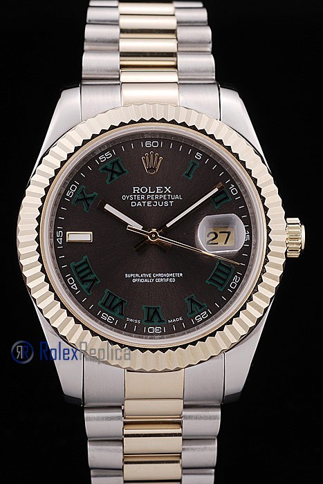 rolex replica datejust acciaio oro ardesia green roman orologio imitazione