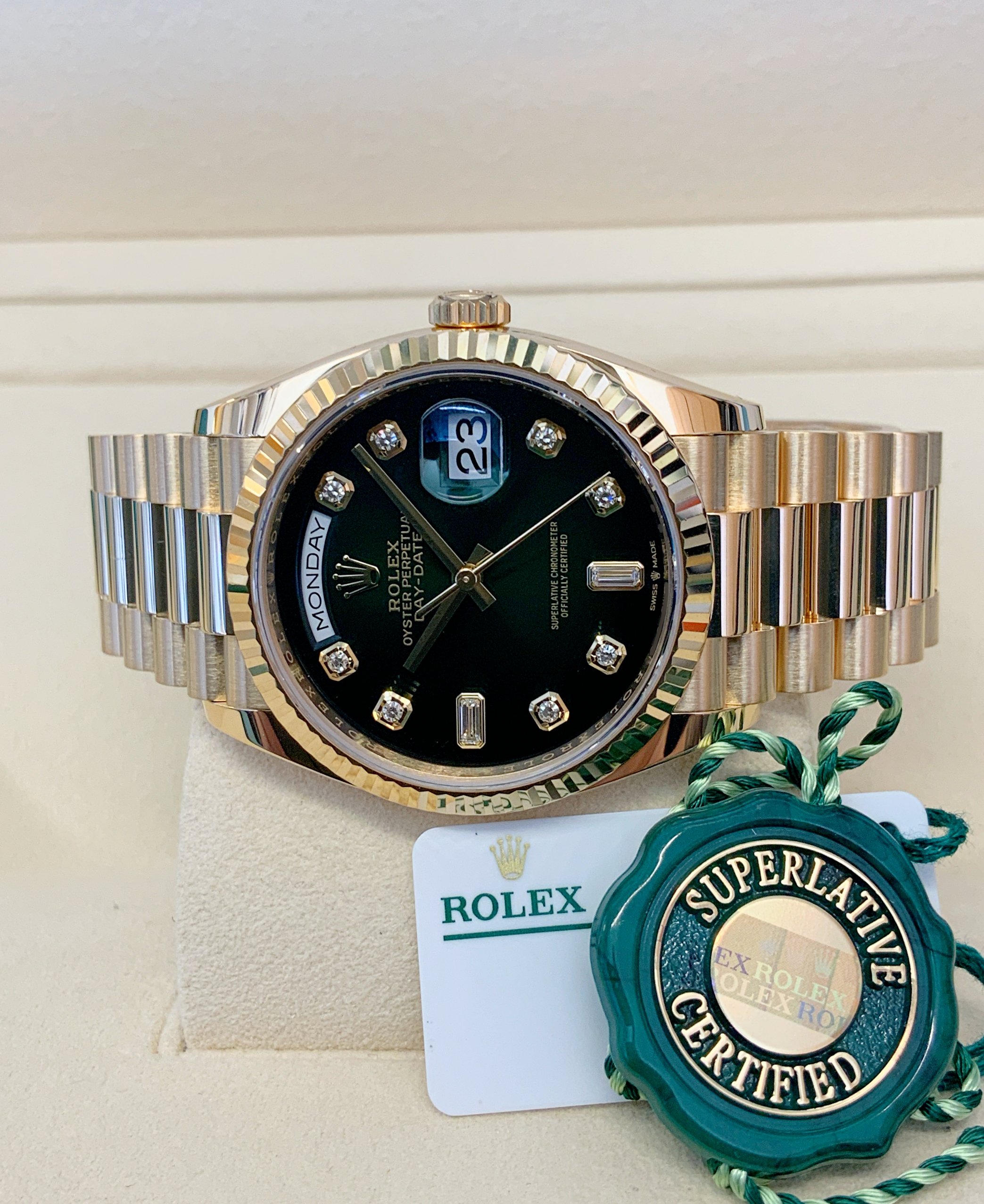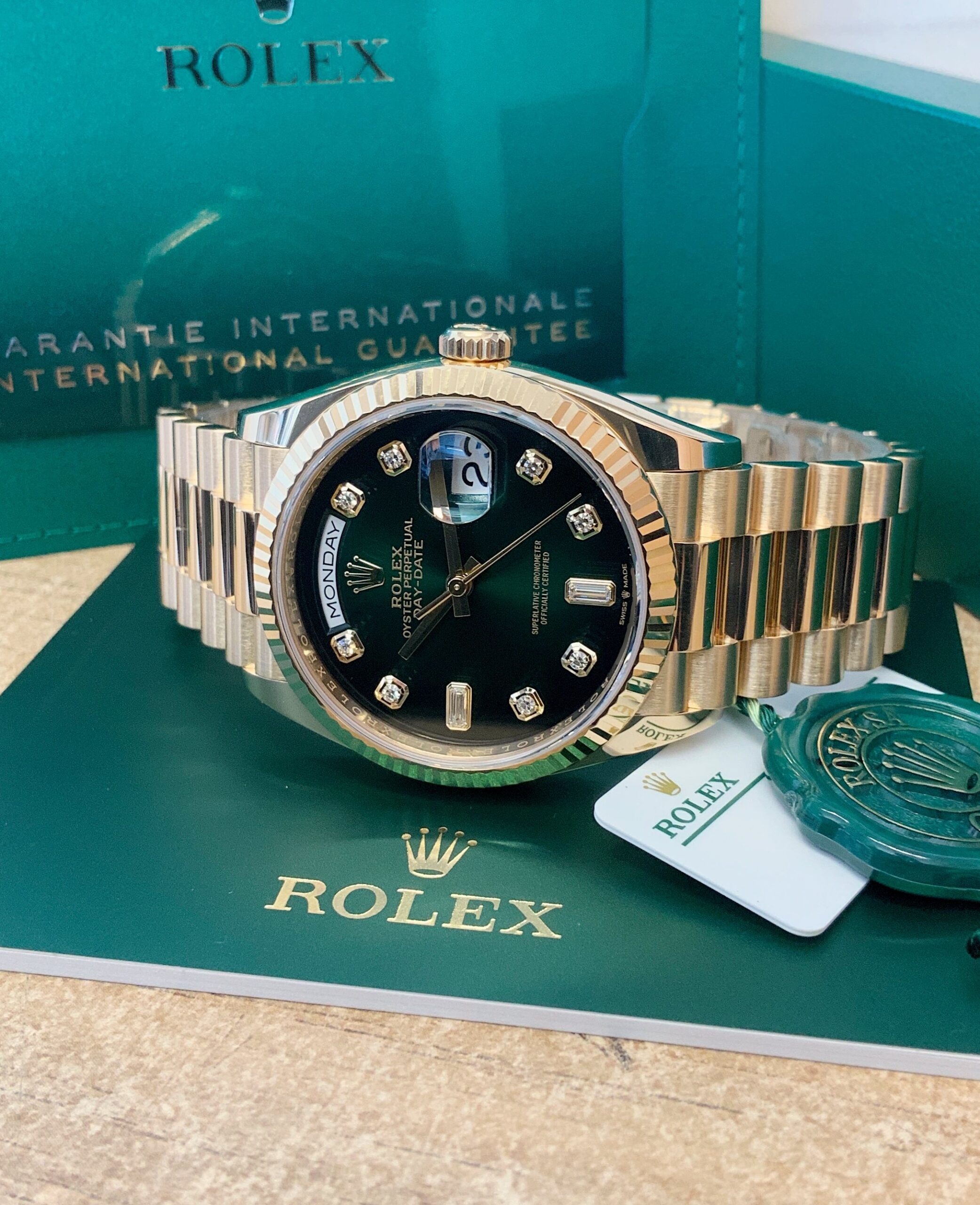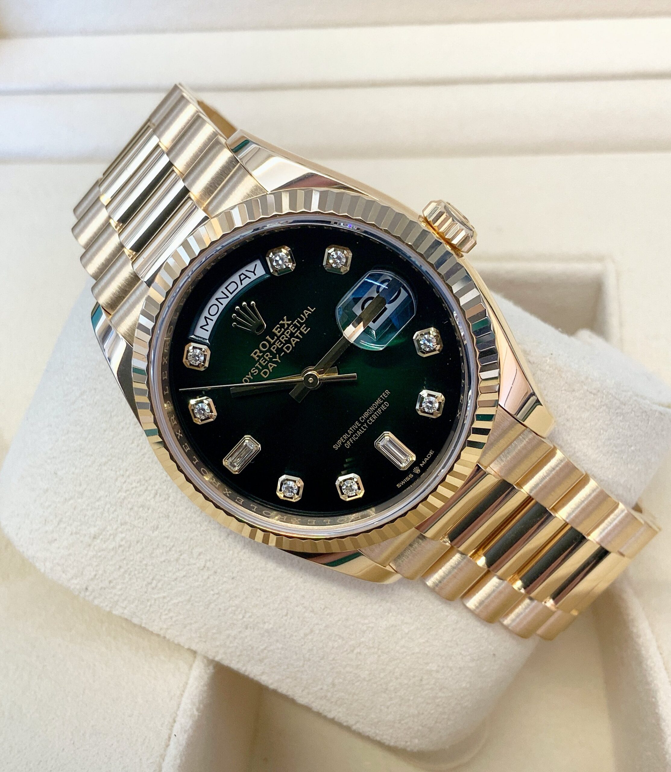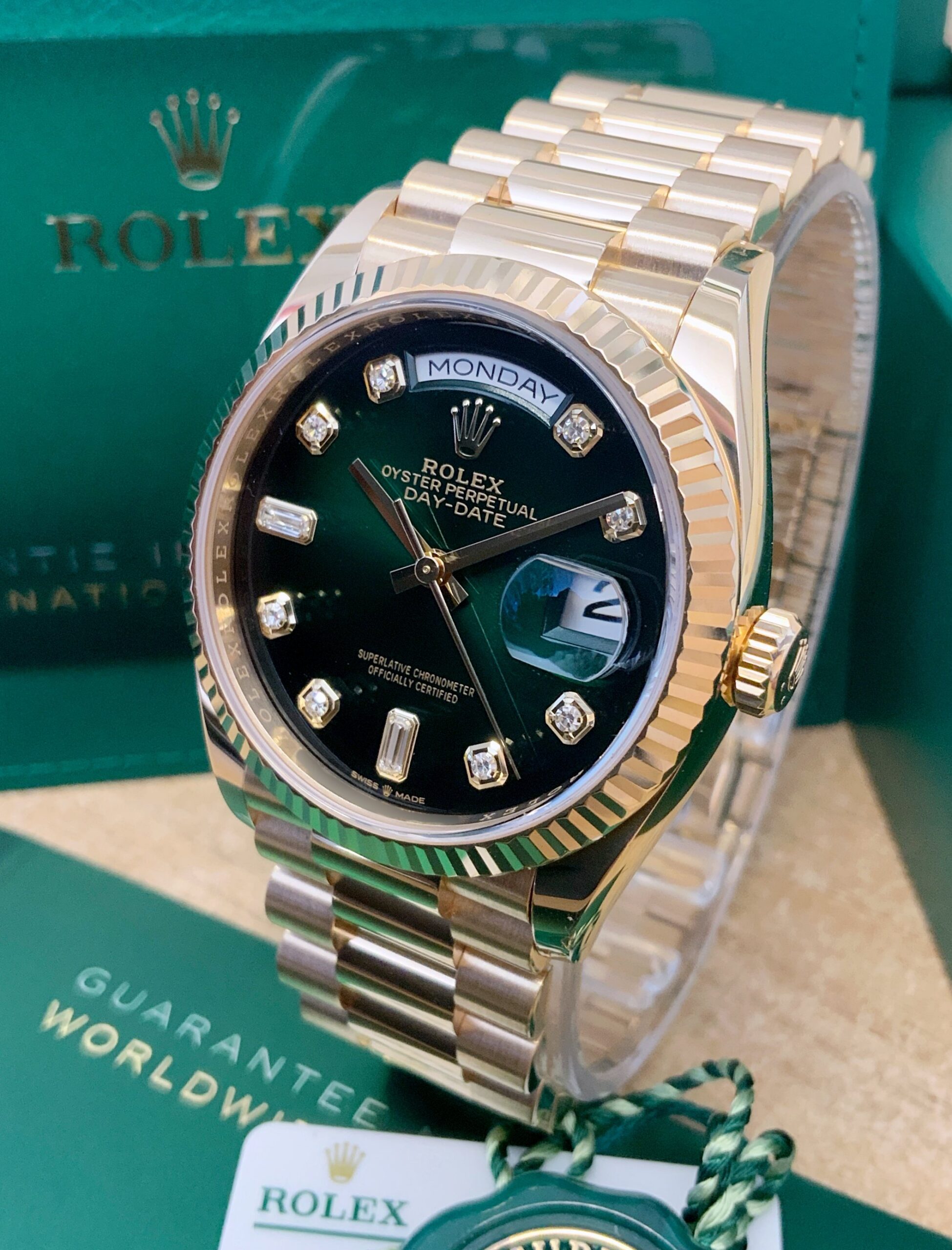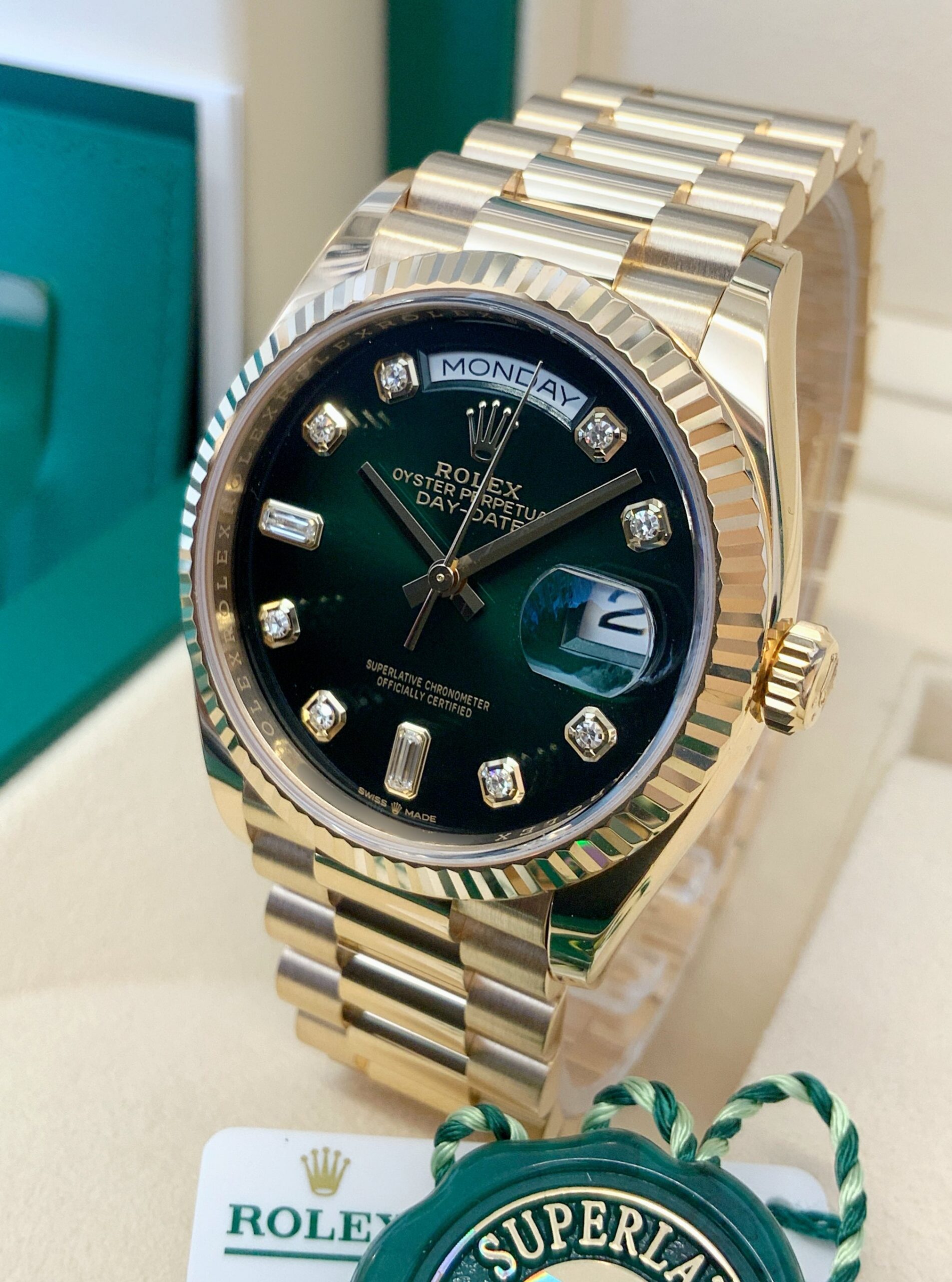 Rolex replica Day-Date 36 128238 Yellow Gold Green Diamond