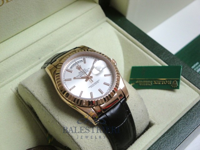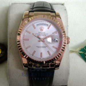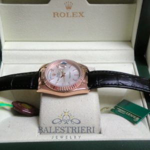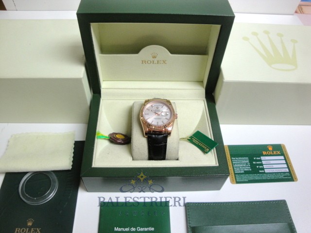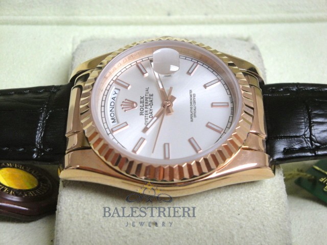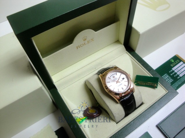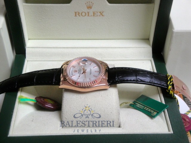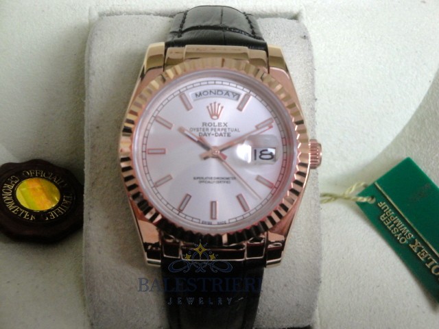 rolex replica daydate rose gold argentèè strip leather orologio replica copia imitazione