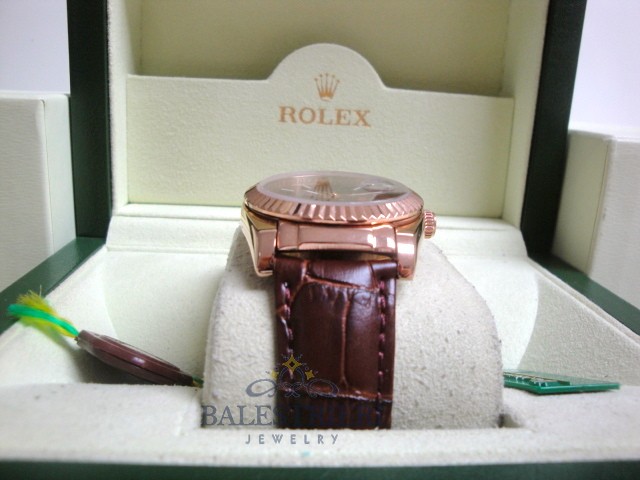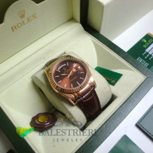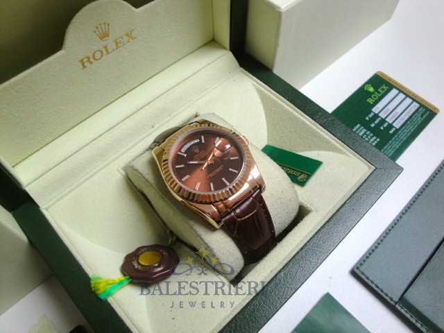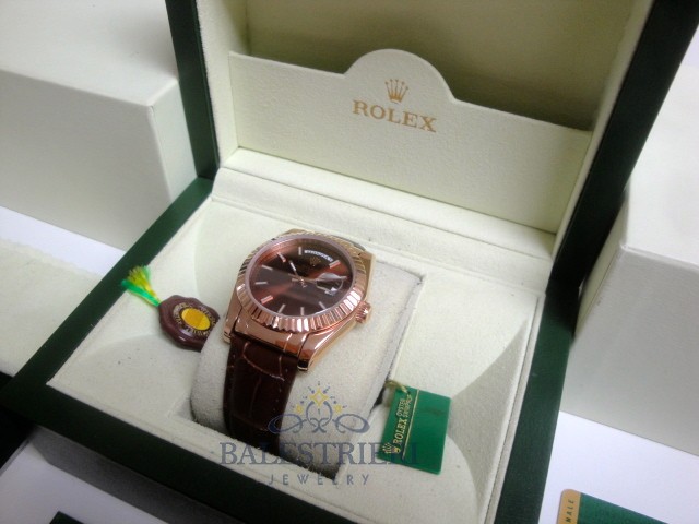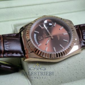 rolex replica daydate rose gold chocolate strip leather orologio replica copia imitazione