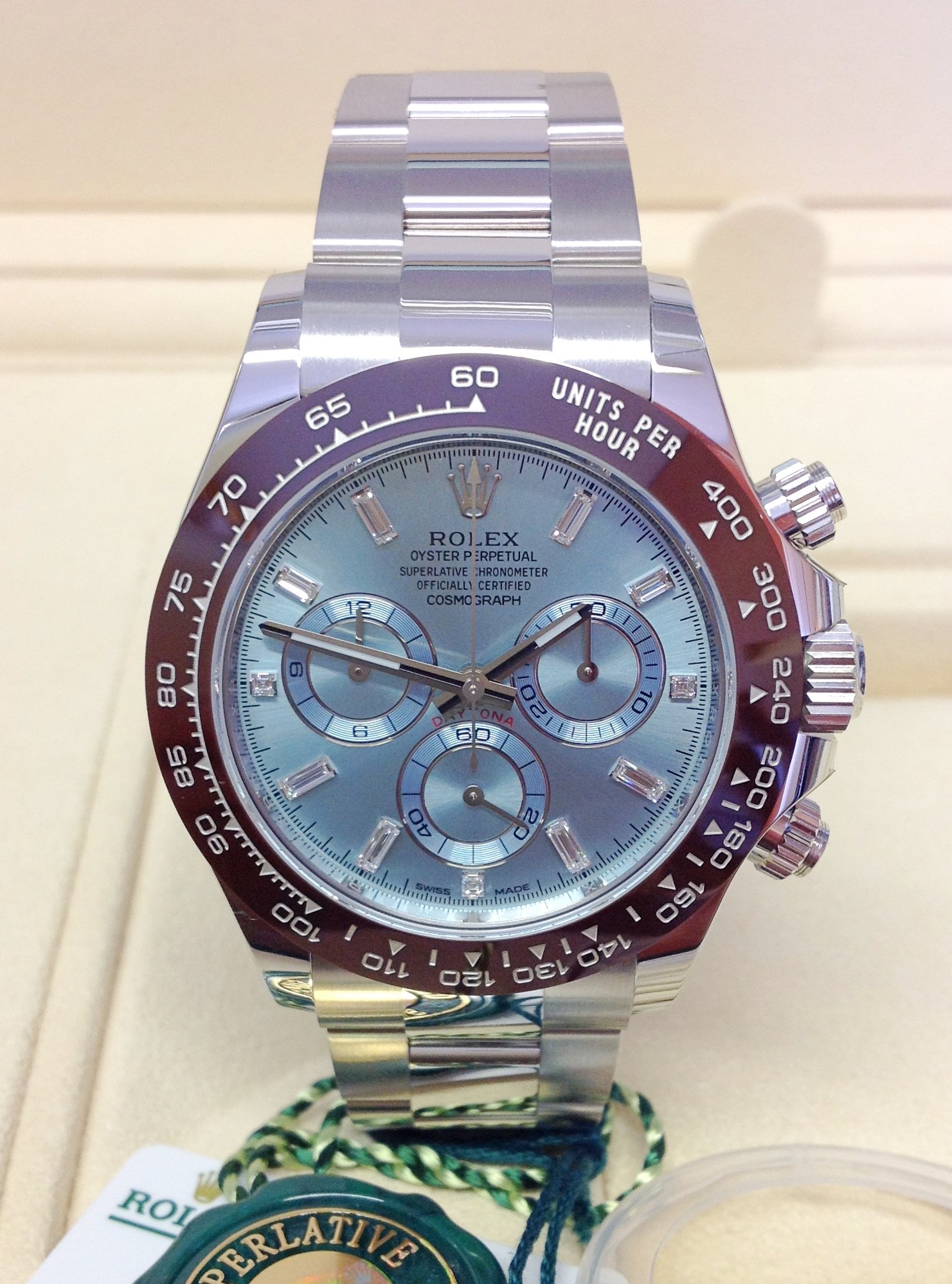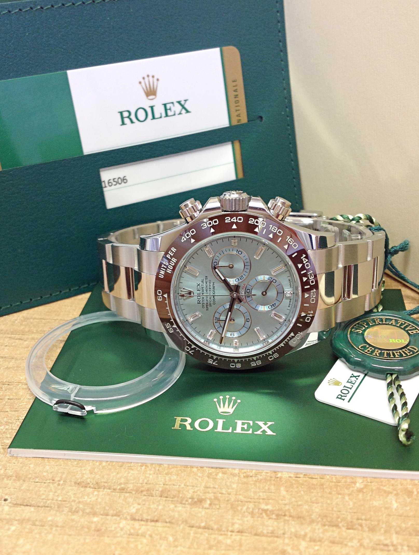 Rolex replica daytona 116506 platinum baguette 4130 clone movement