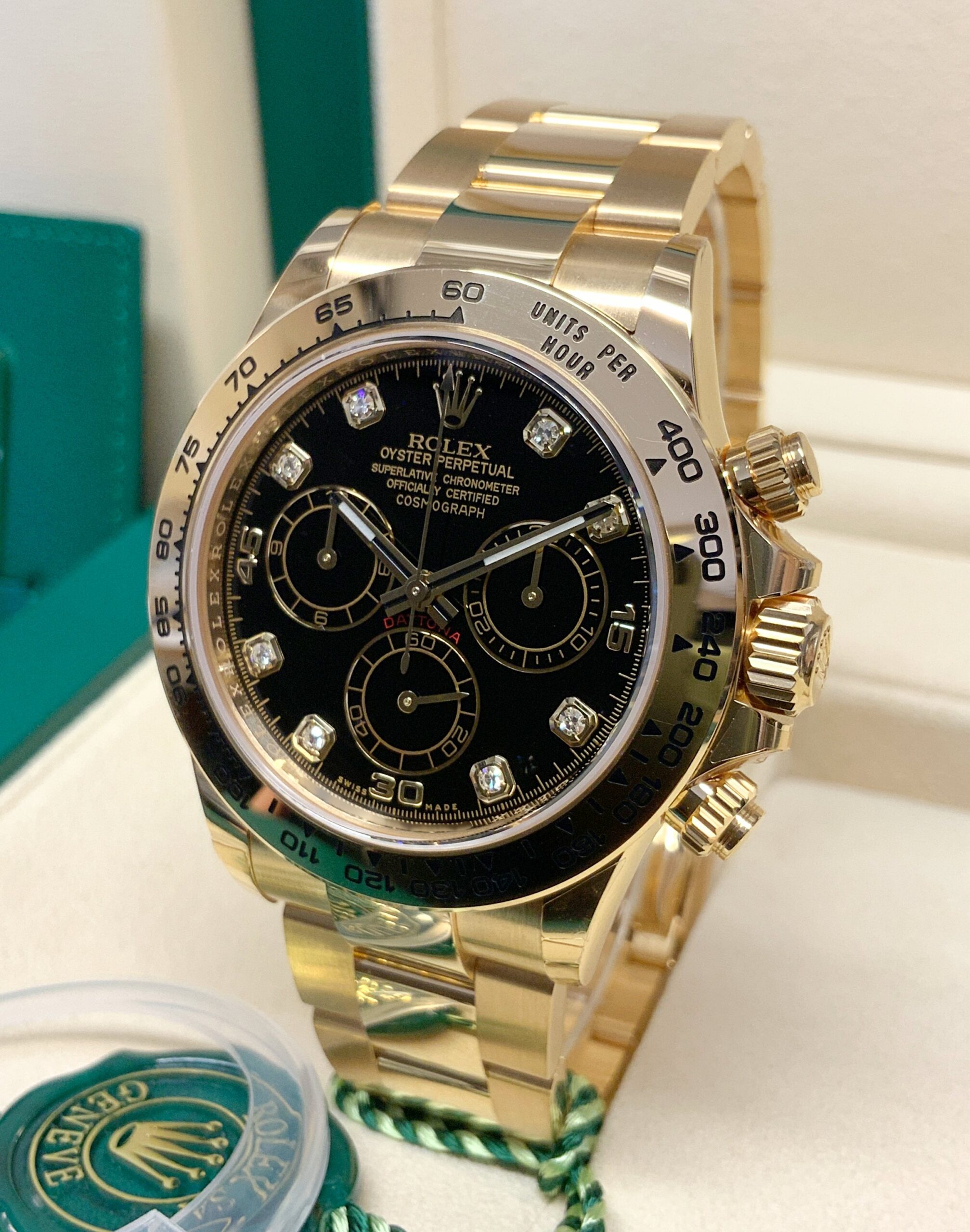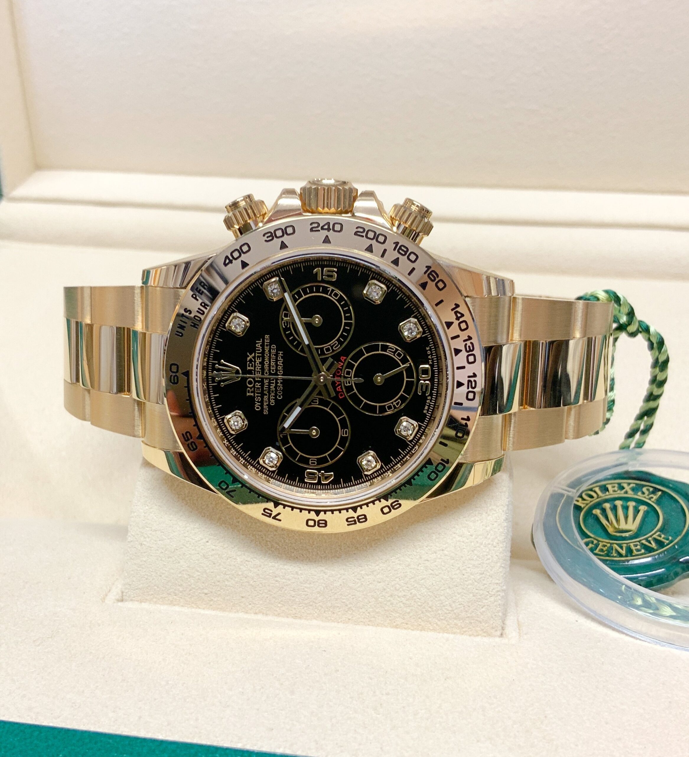 Rolex replica Daytona 116508 Yellow Gold black diamond dial