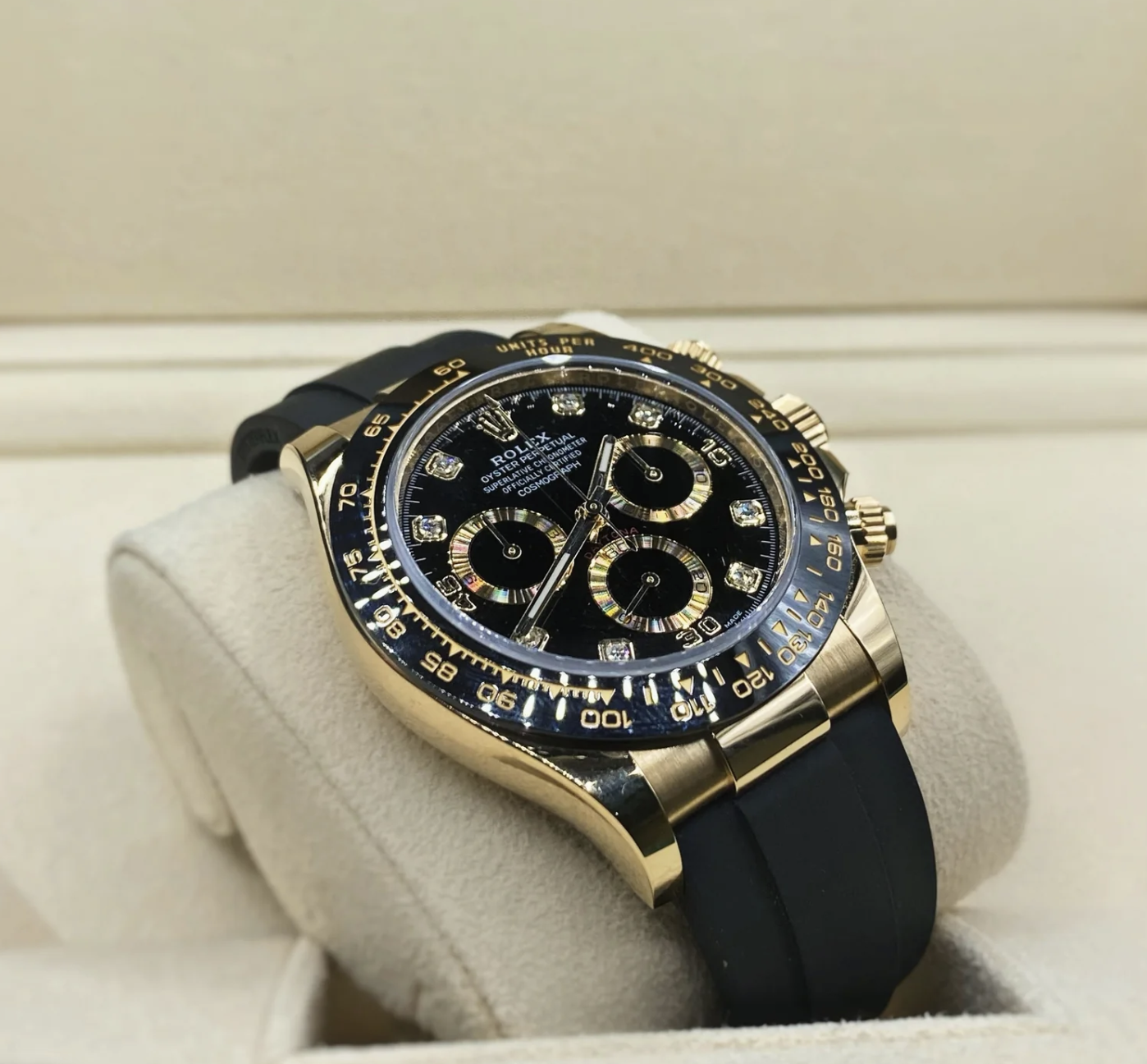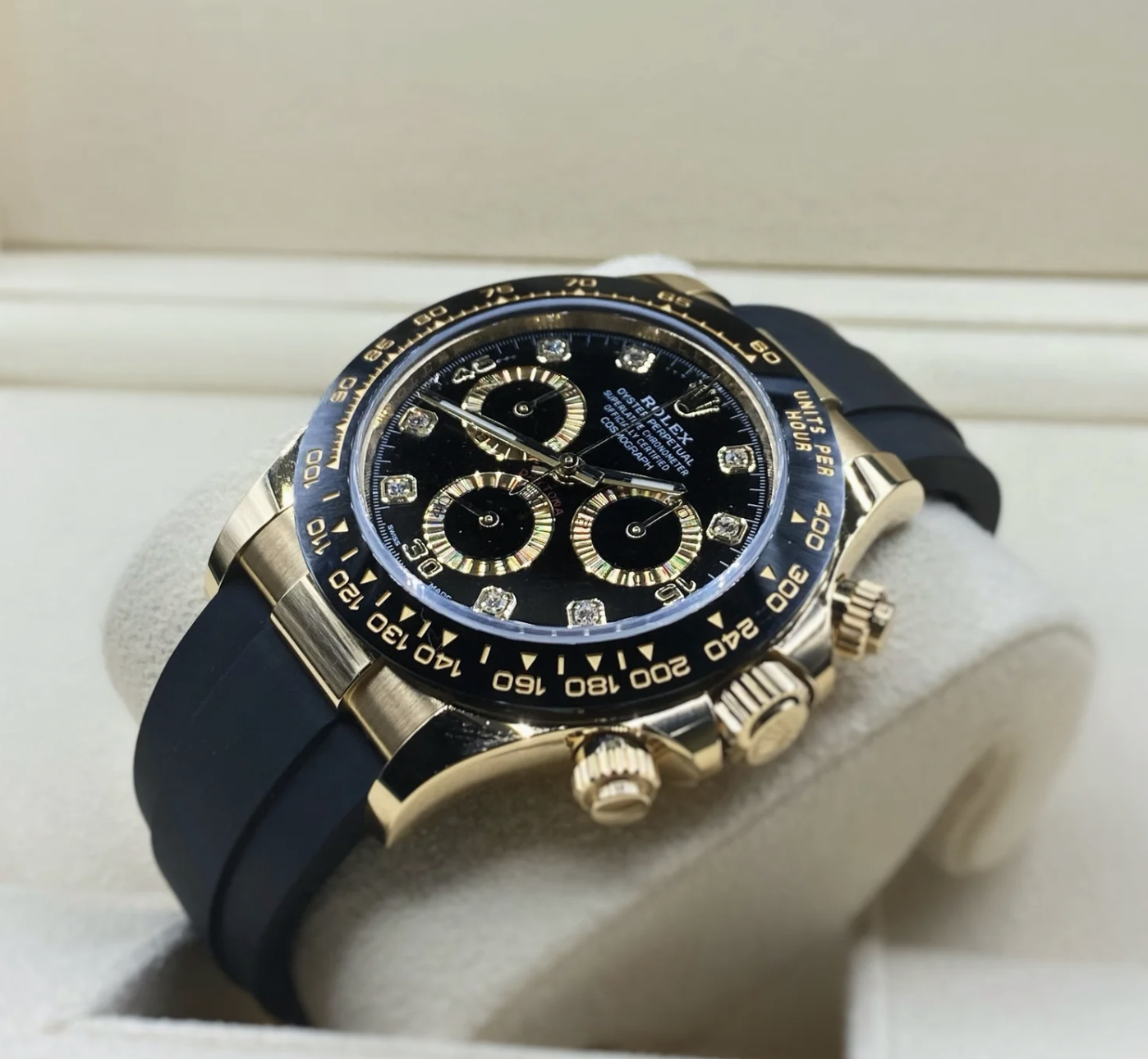 Rolex replica daytona 116518LN black diamond dial oysterflex clone movement