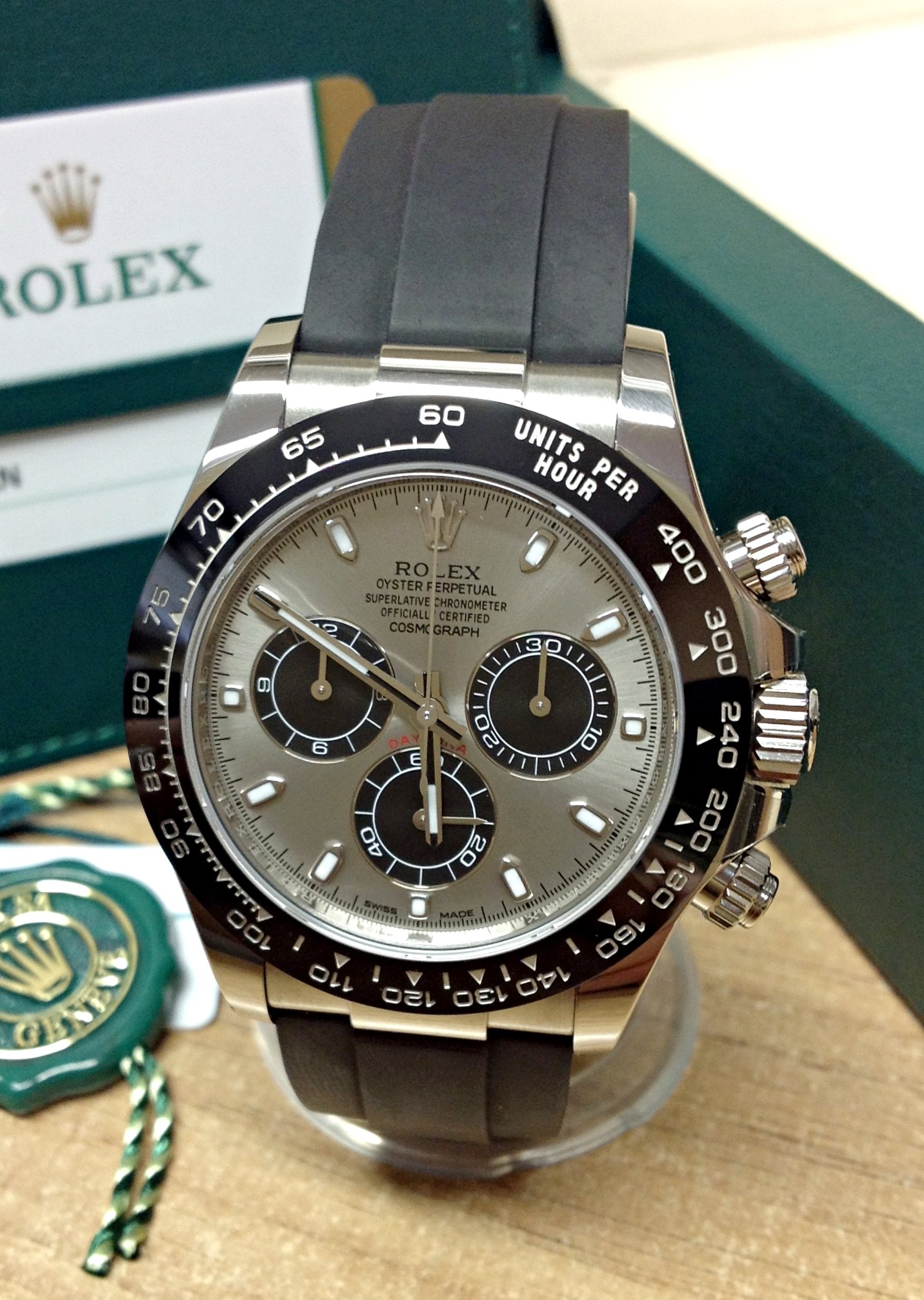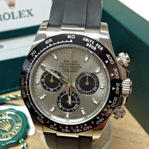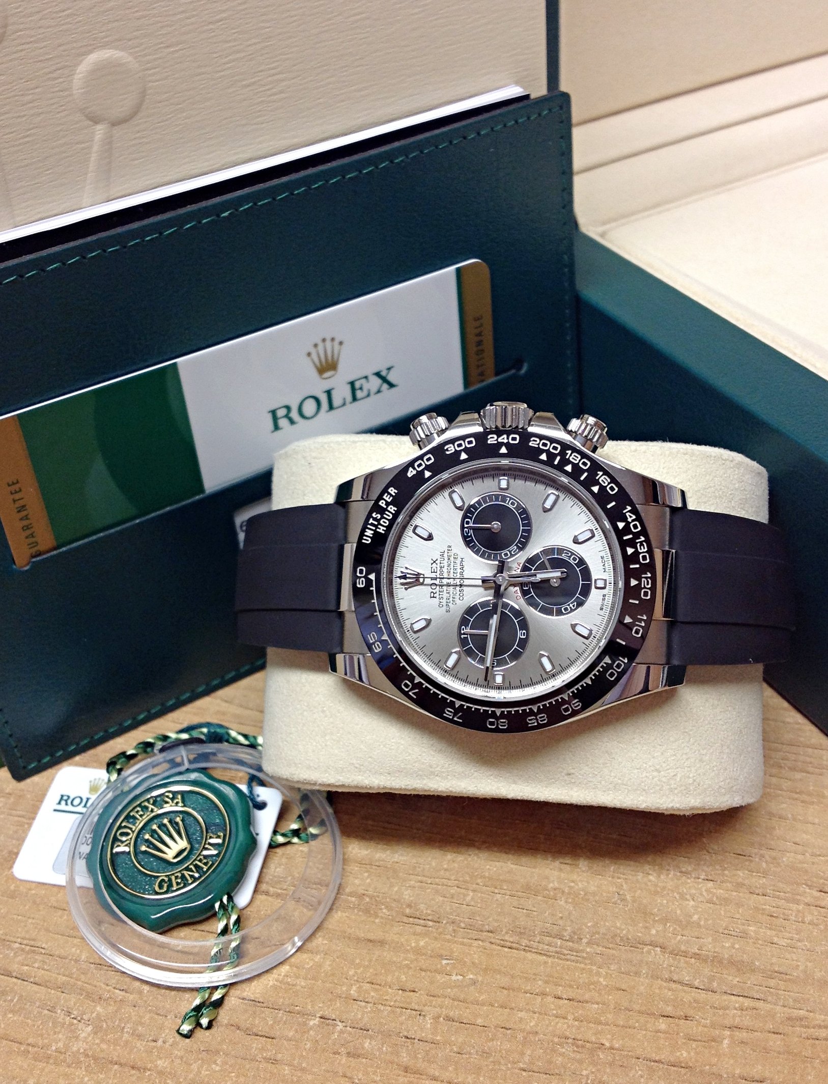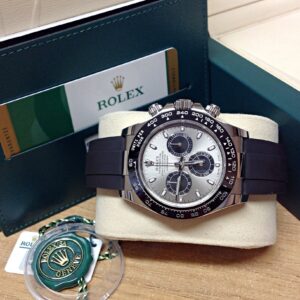 Rolex replica daytona white gold 116519LN oysterflex silver dial