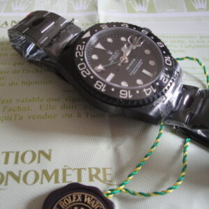 - Cassa fresata dal pieno con i più moderni strumenti dell’ alta orologeria in acciaio Inox 904 AISI L, realizzata su base originale con strumenti di disegno al CAD. Le casse sono tutte timbrate e serigrafie come in originale: numero di matricola da un lato tra le ansette e numero di referenza con dicitura: rolex original design dall’ altro lato tra le ansette Rolex replica GMT master II con specifico trattamento PVD