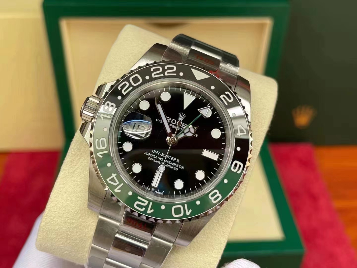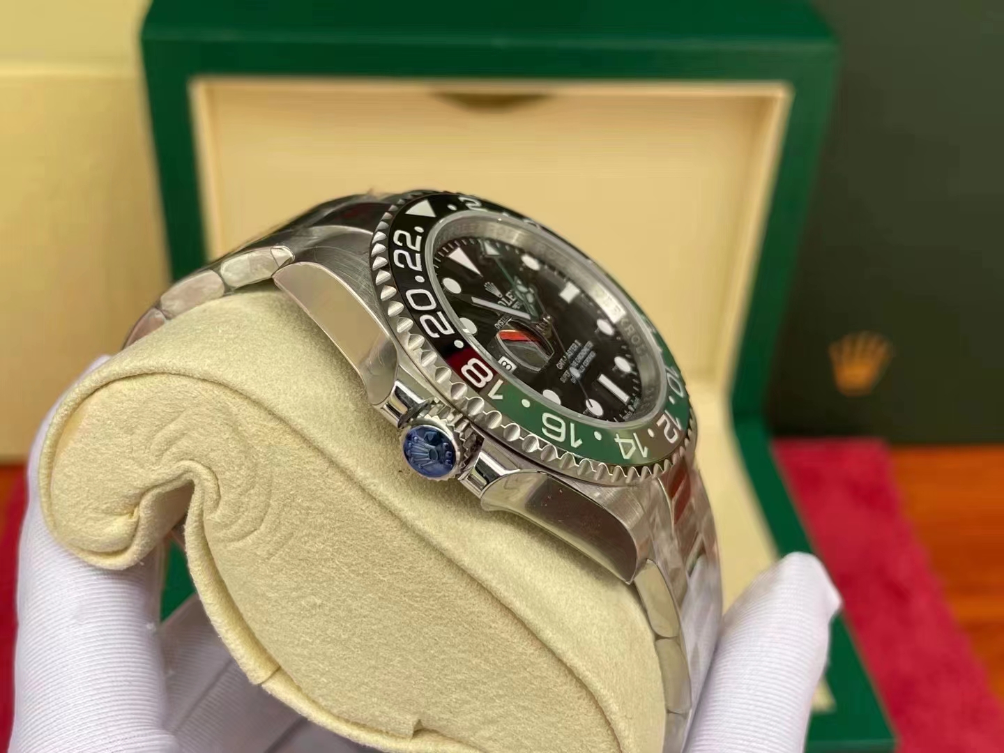 - Vetro zaffiro, la brillantezza del vetro è identica all’ originale, il vetro è inscalfibile come l’ originale Rolex replica GMT master II