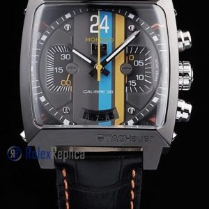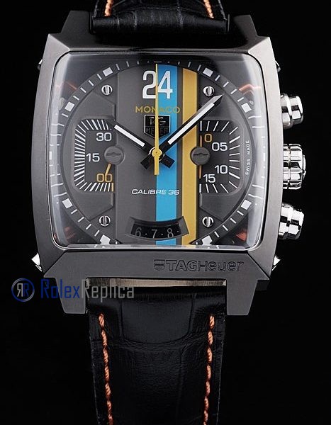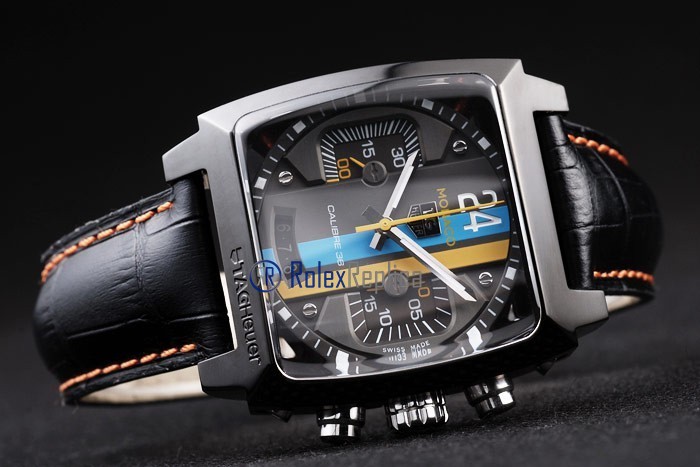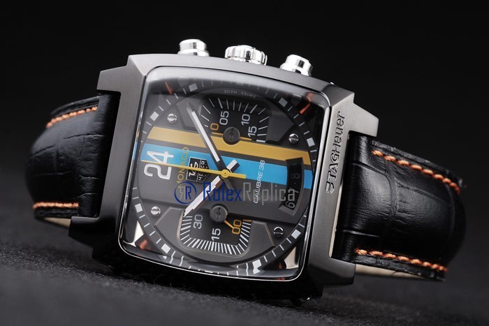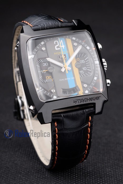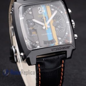 Tag-heuer replica gran carrera monaco gulf strip leather chrono black imitazione copia